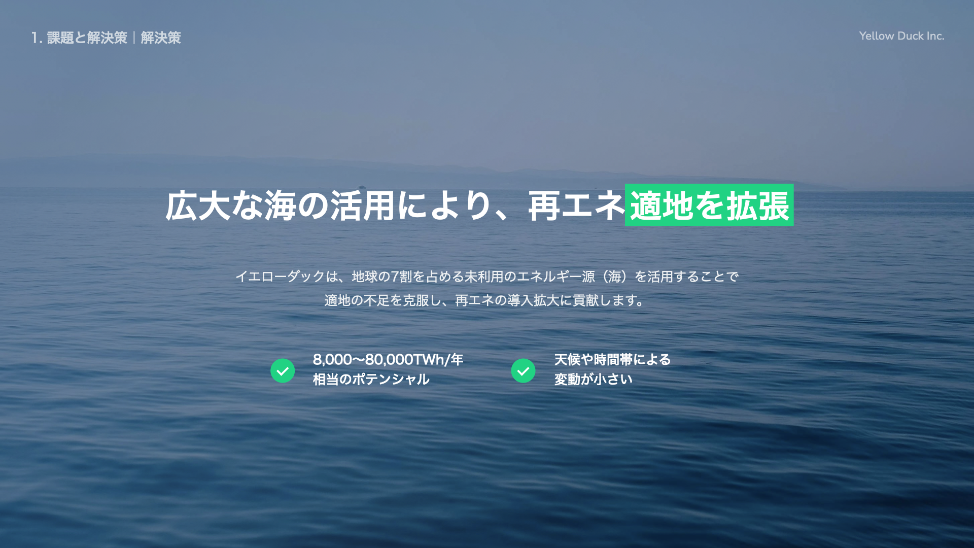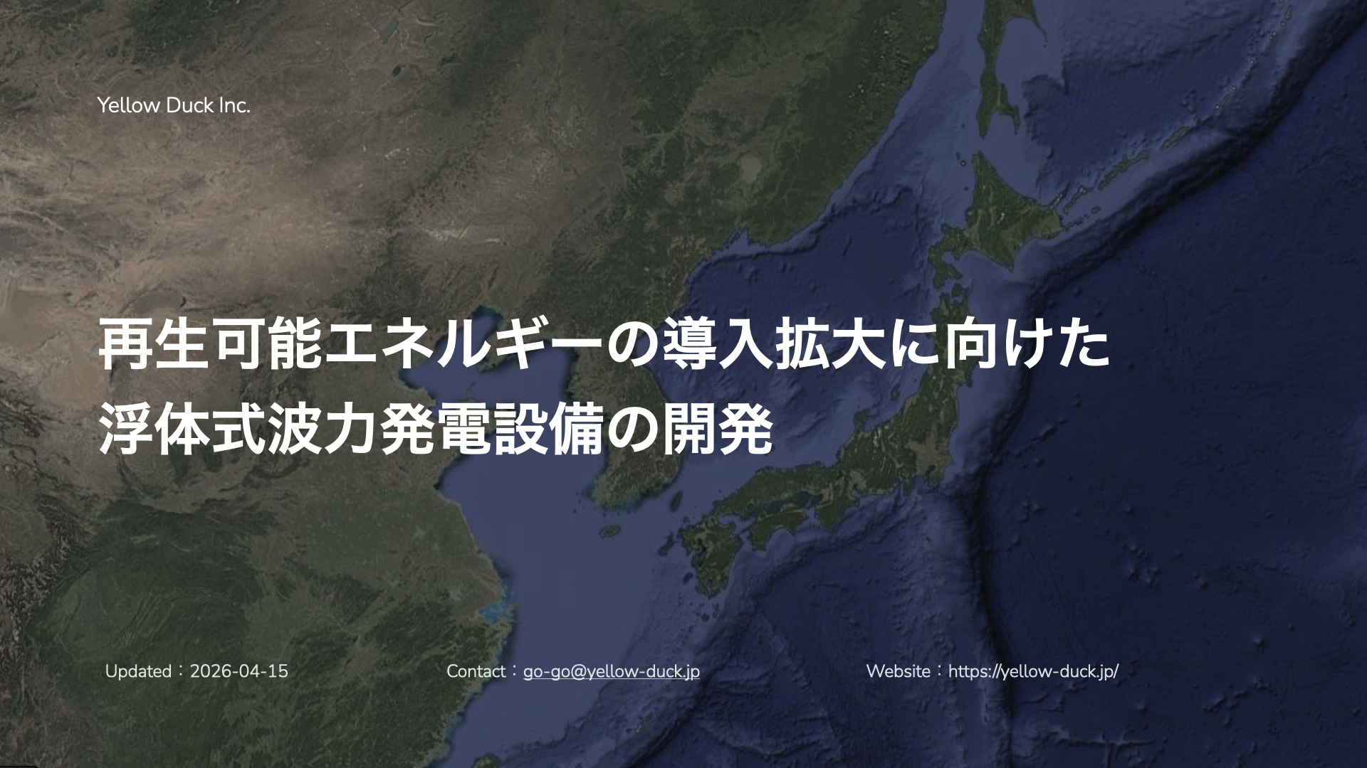 Yellow Duck株式会社(本社:兵庫県神戸市、代表取締役:中山 繁生)は、大阪産業局が主催する「HeCNOS AWARD(ヘクノス・アワード)」の受賞を経て、7月1日(火)〜7月7日(月)にかけて、大阪・関西万博内の大阪ヘルスケアパビリオンにて、海洋再生可能エネルギーの可能性や社会実装に向けた取り組みに関する展示を実施します。