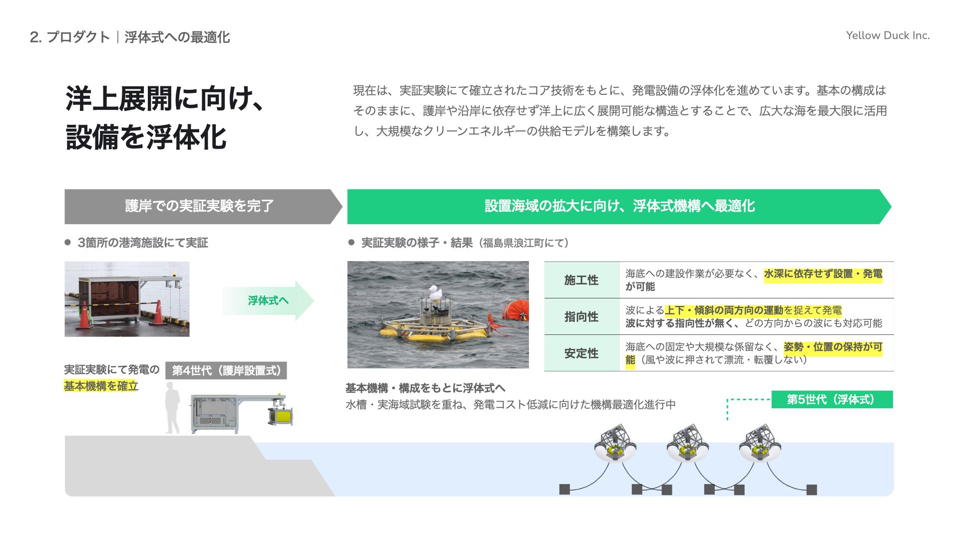 Yellow Duck株式会社(本社:兵庫県神戸市、代表取締役:中山 繁生、以下「イエローダック」)は、神戸市と協働で海洋再生可能エネルギー発電設備に併設する浮魚礁の実証実験を開始しました。