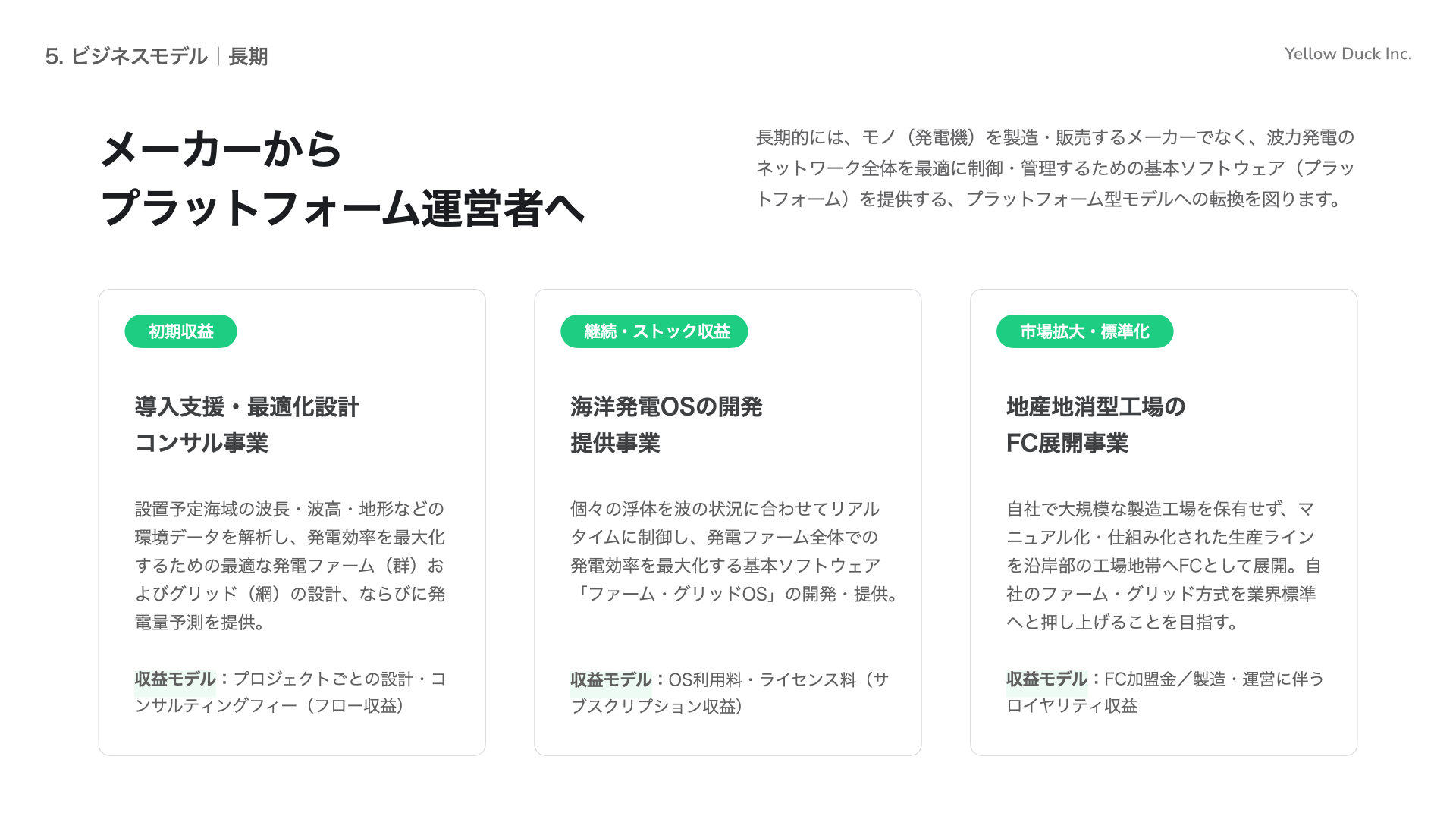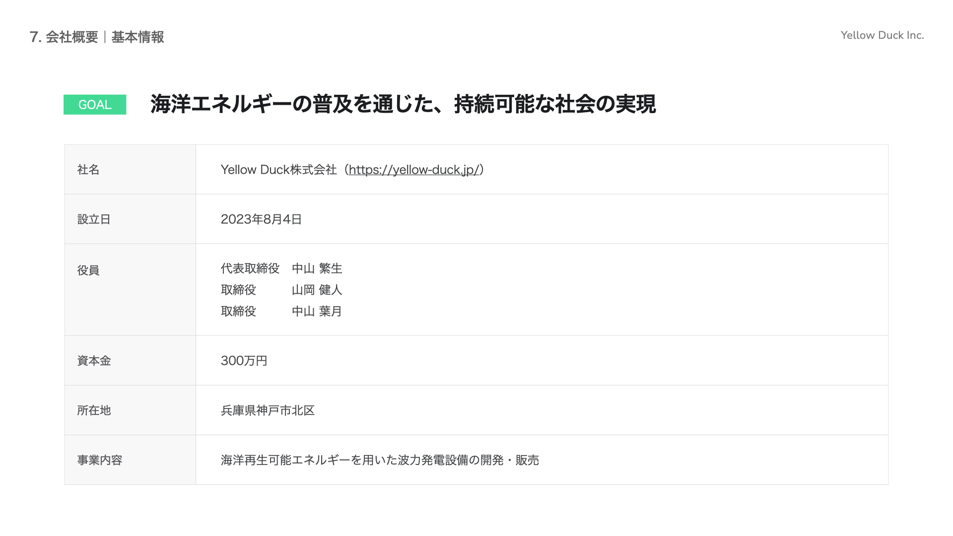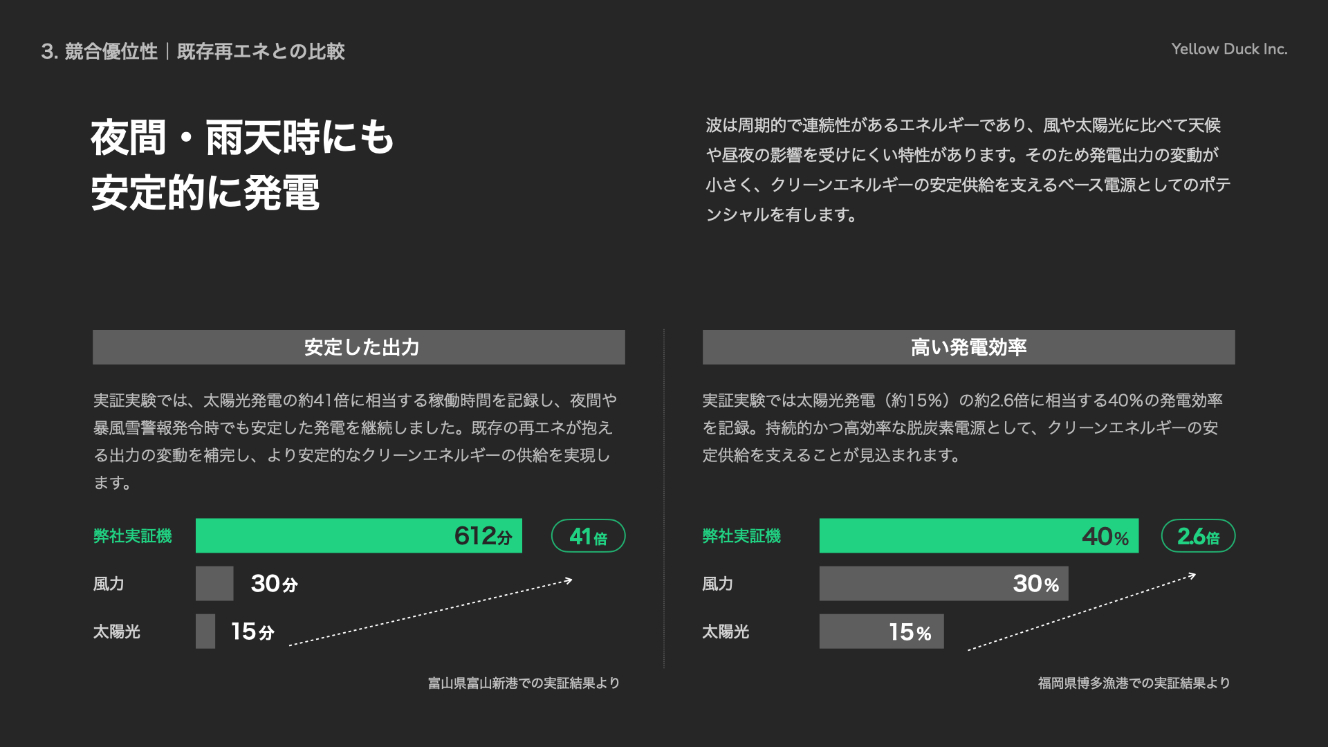 Yellow Duck株式会社(本社:兵庫県神戸市、代表取締役:中山 繁生、以下「イエローダック」)は、大阪産業局が主催する「うめきたピッチ×VC-MEET UP特別回」へ登壇し、万博出展企業として海洋再生可能エネルギーの社会実装に向けたピッチを行いました。